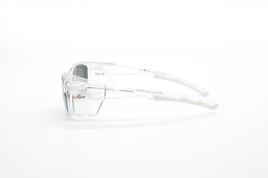 Grey Lens, Clear Frame, Clear Side Shields